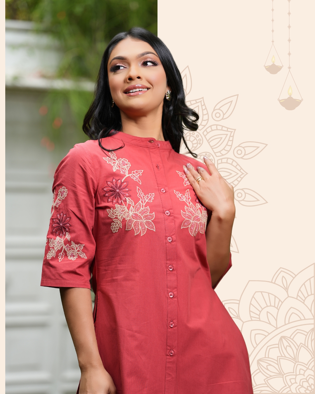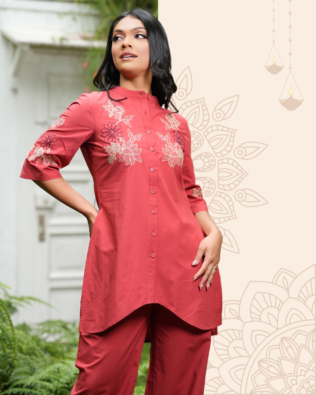 - Button-Down Kurta Top with Embroidery