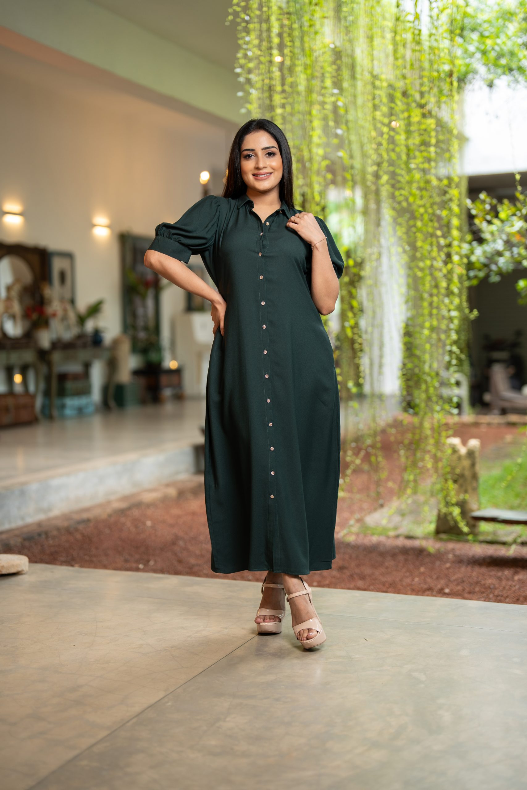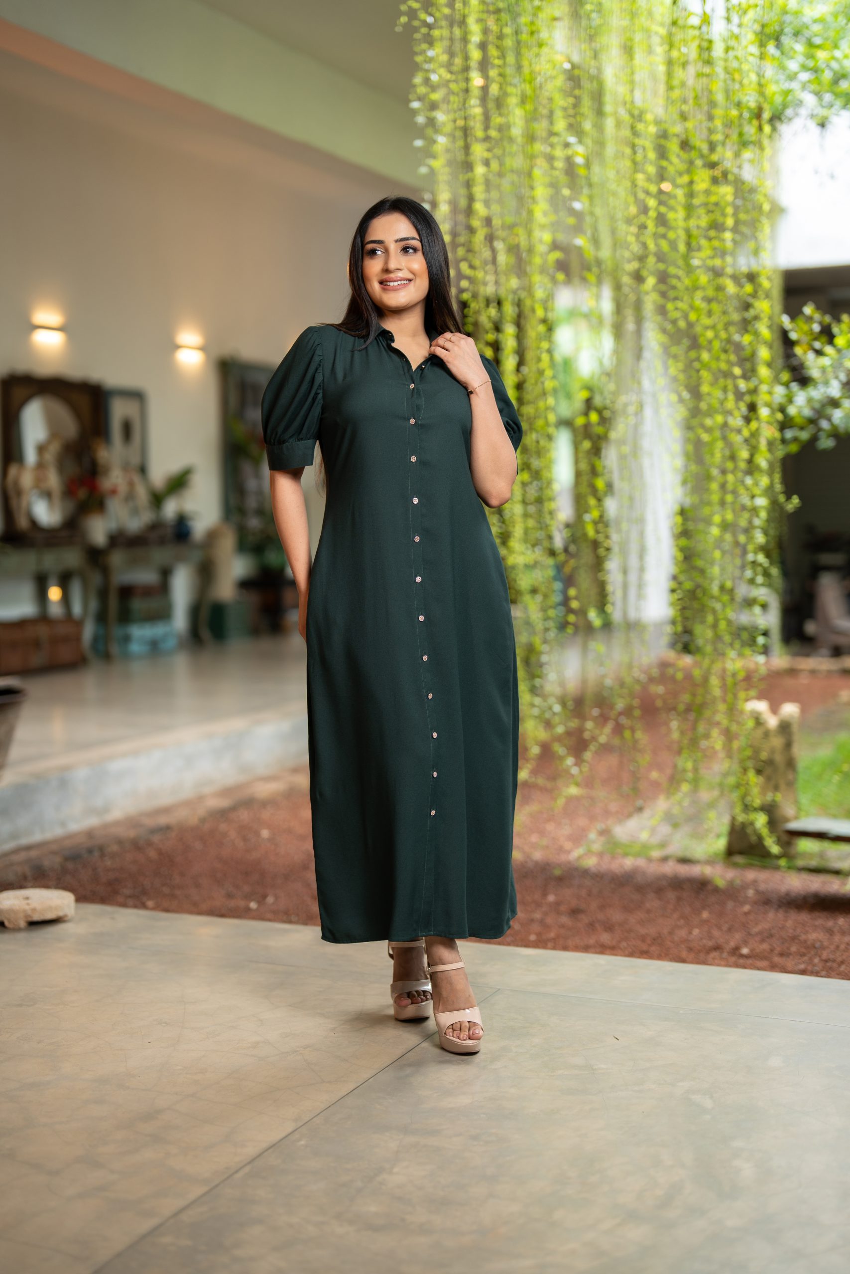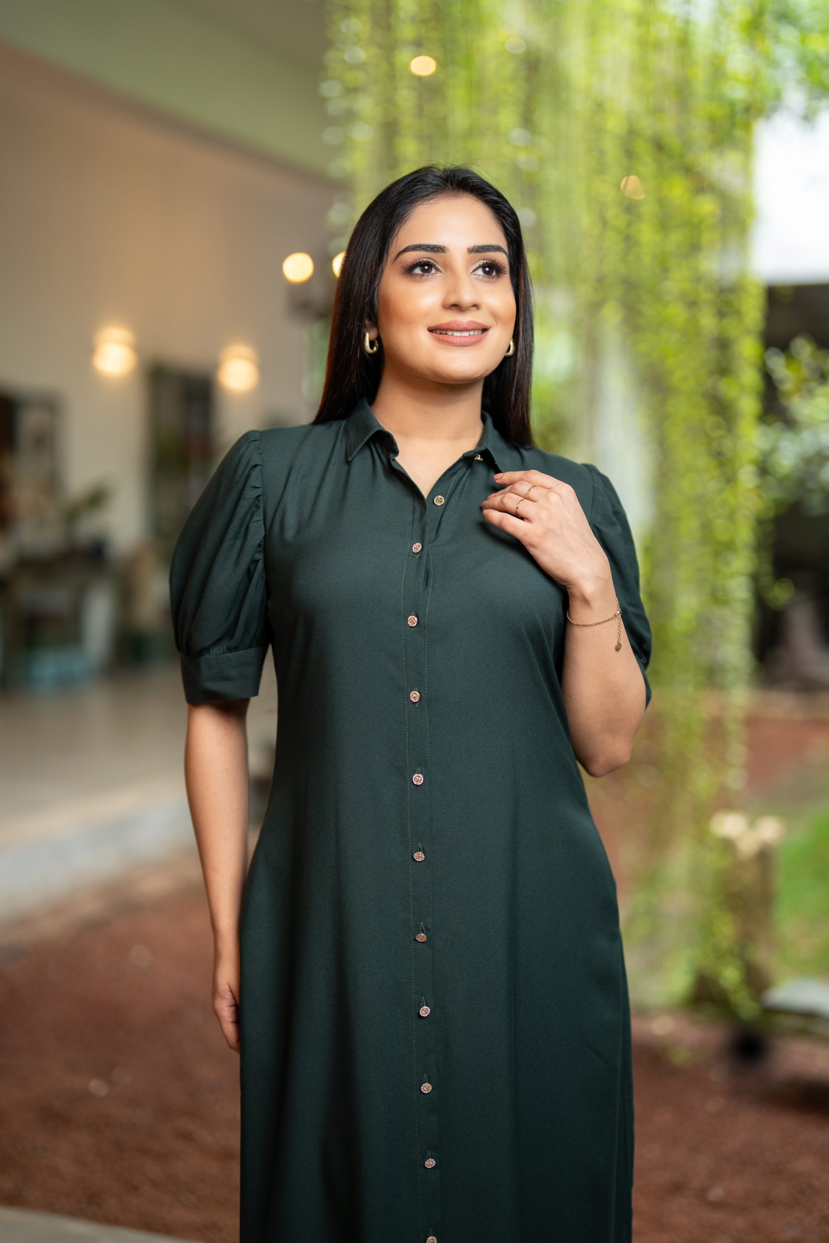 - Front Button-Up Design with Puff Sleeve