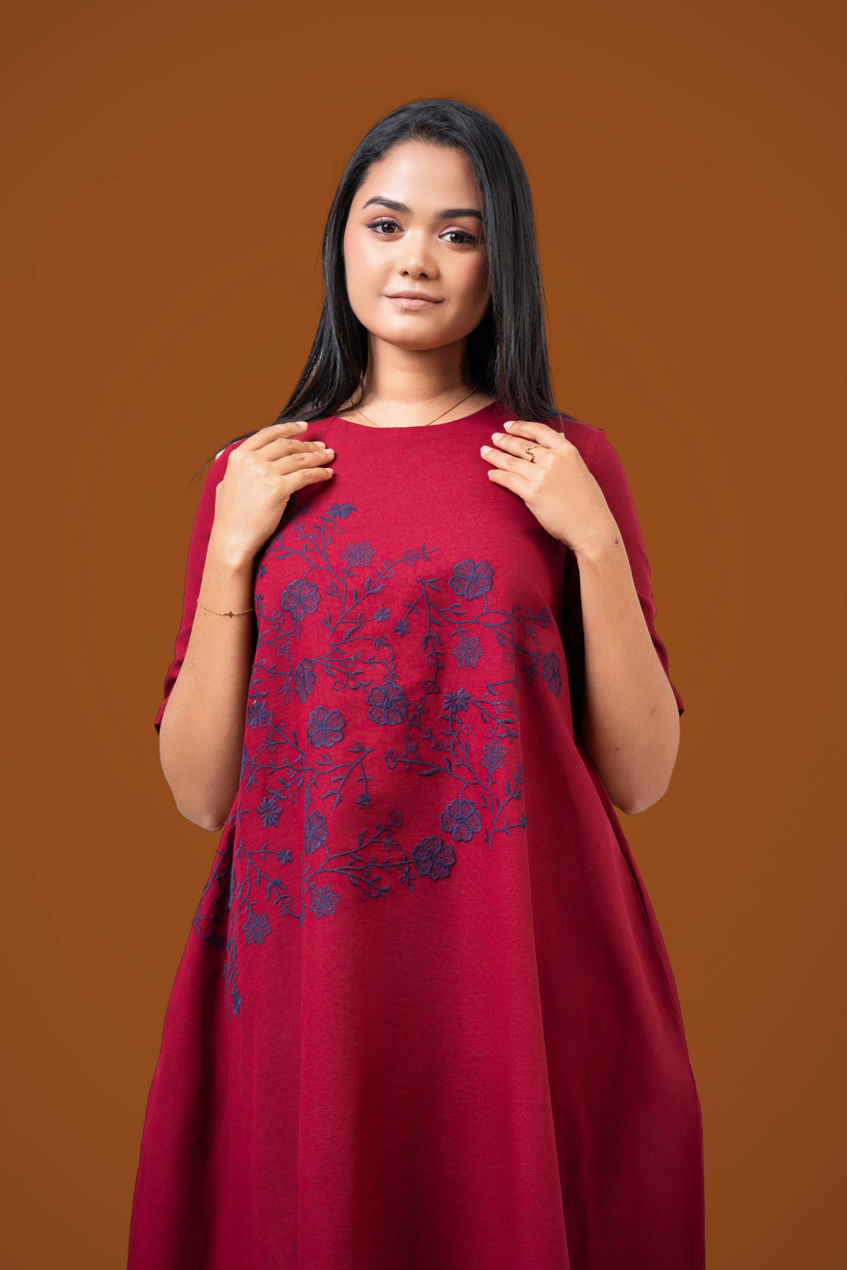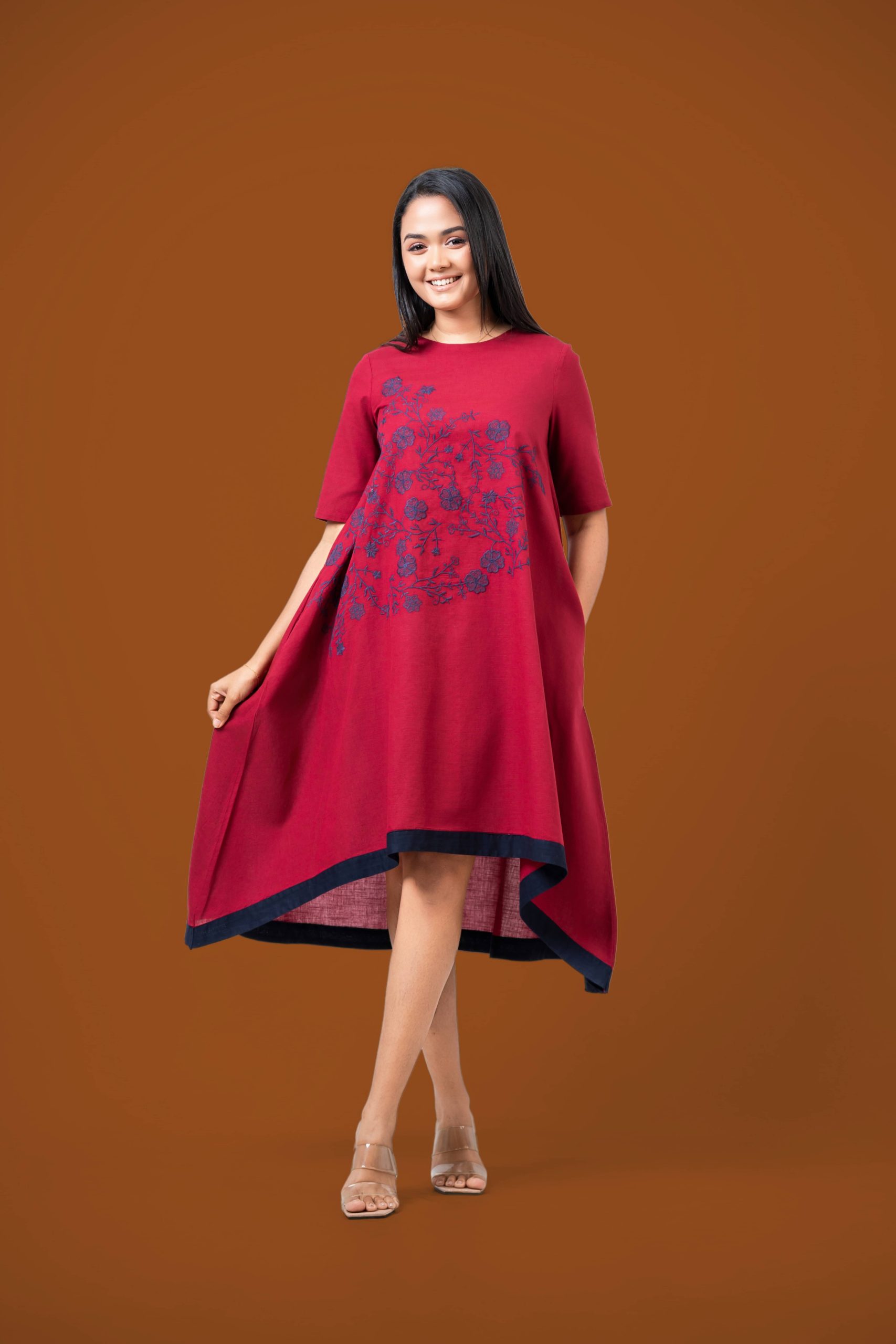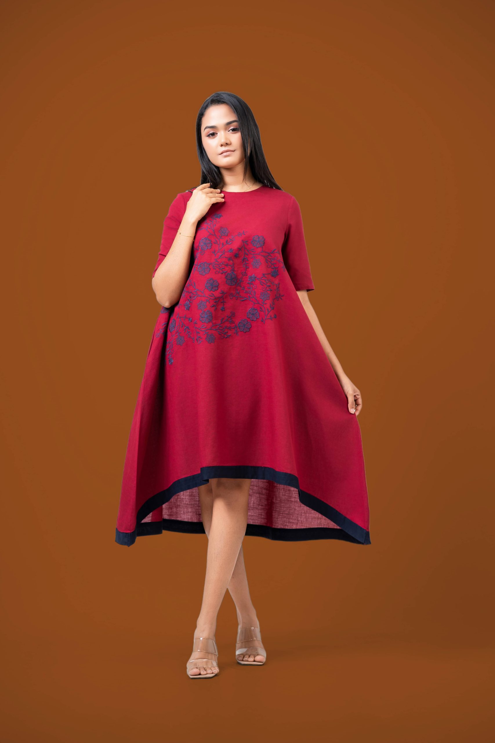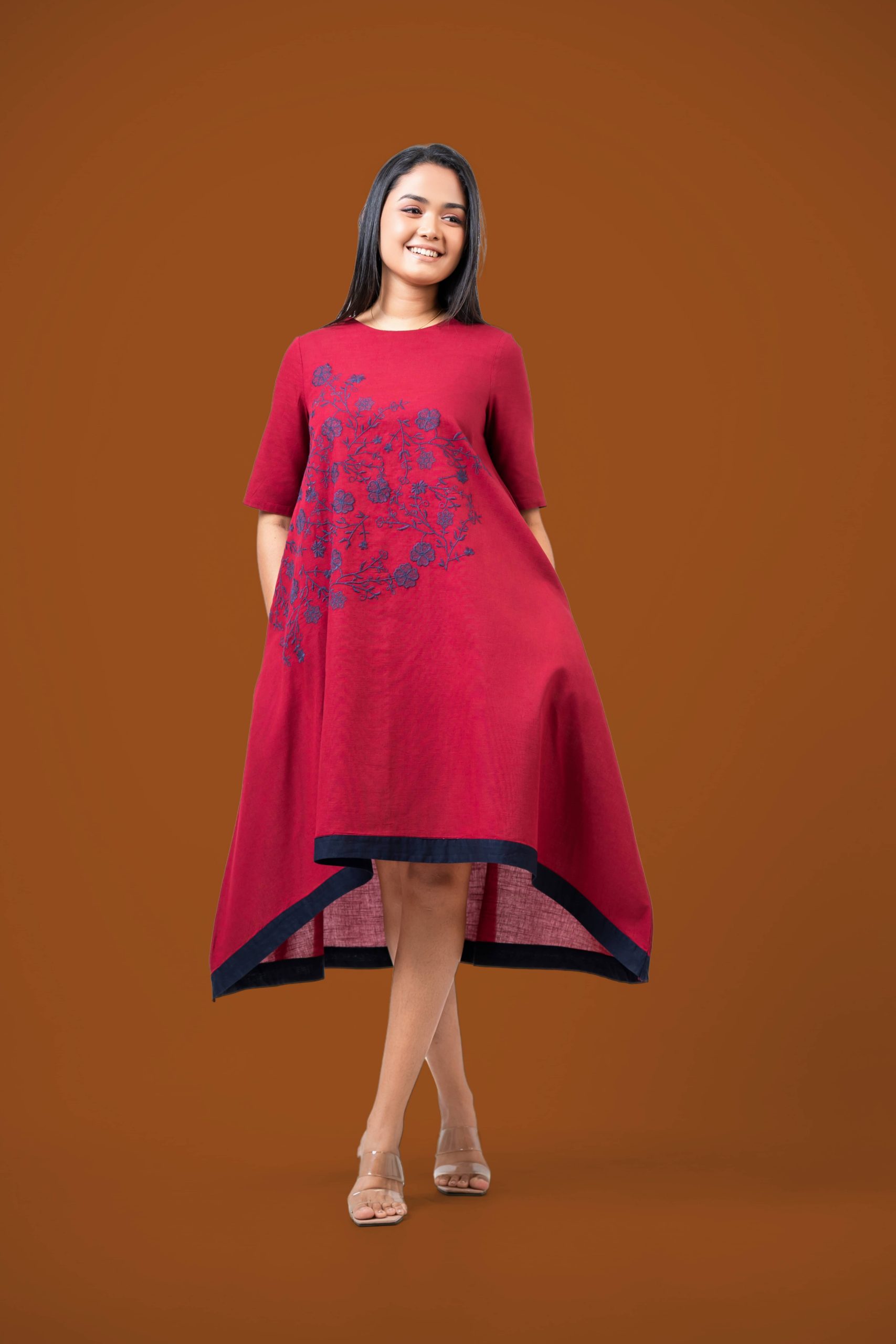 - Elegant High-Low Hem with an Intricate Contrast Embroidery