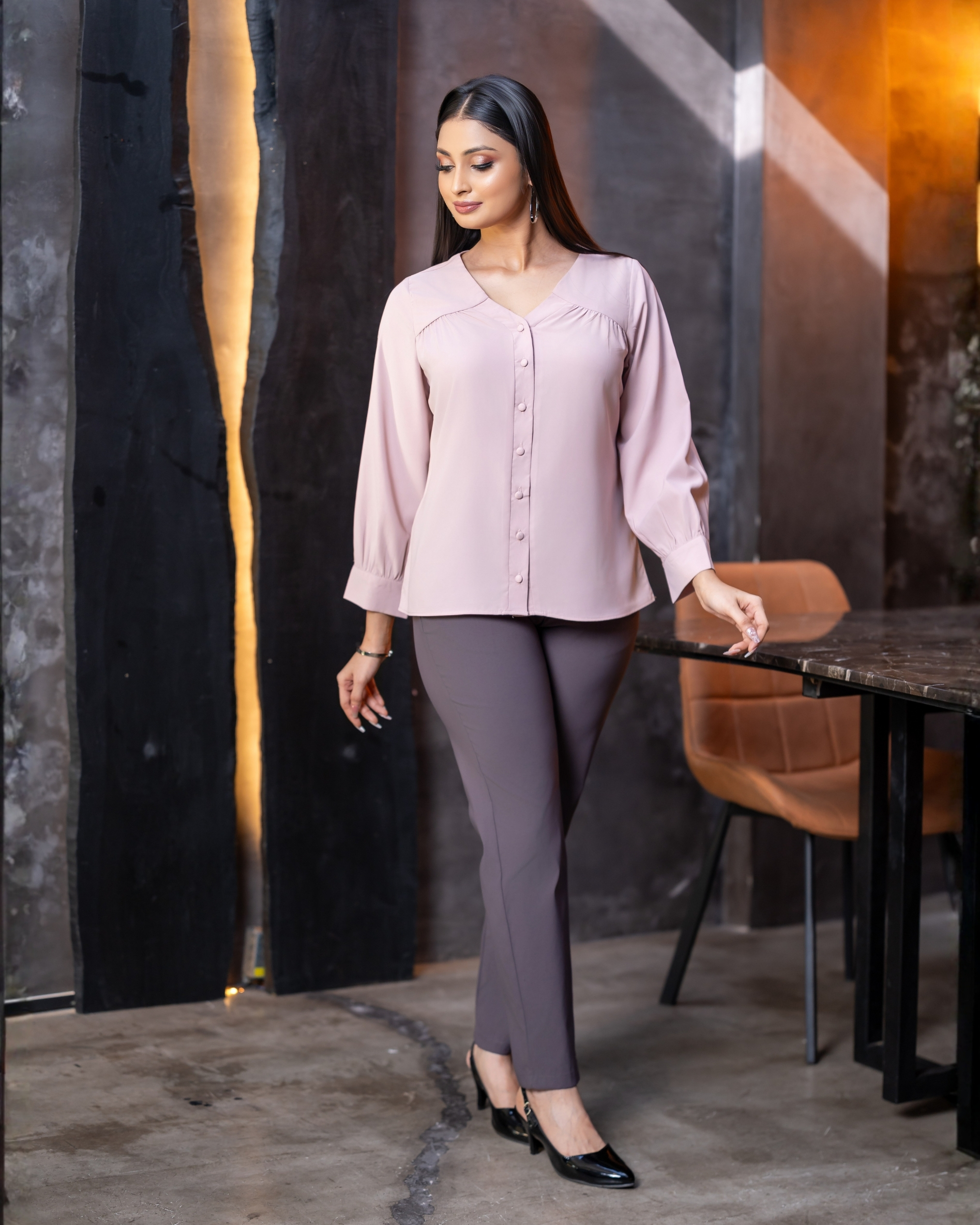 • V-Neckline with Front Yoke