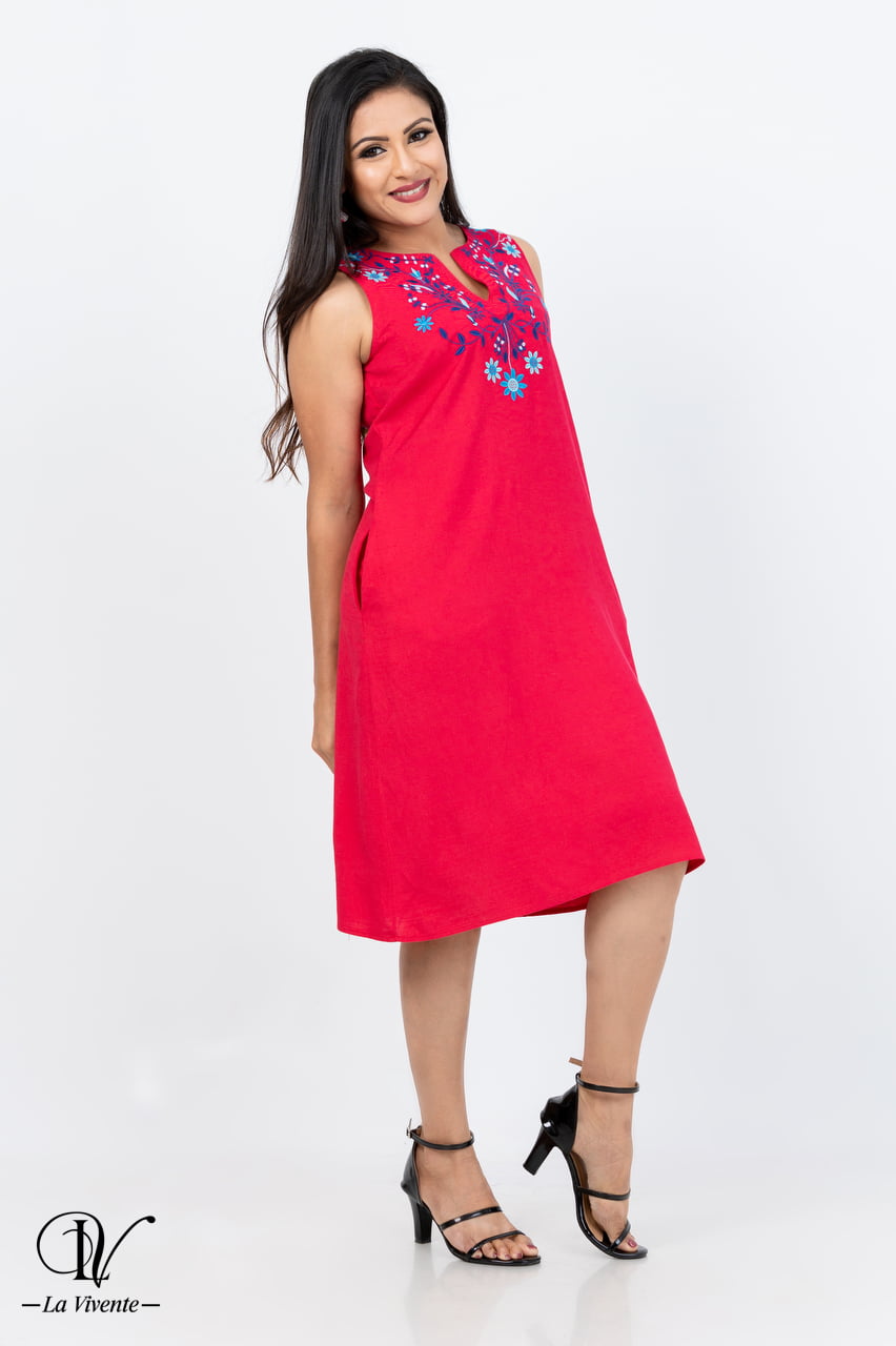 - Embroidery Linen Dress