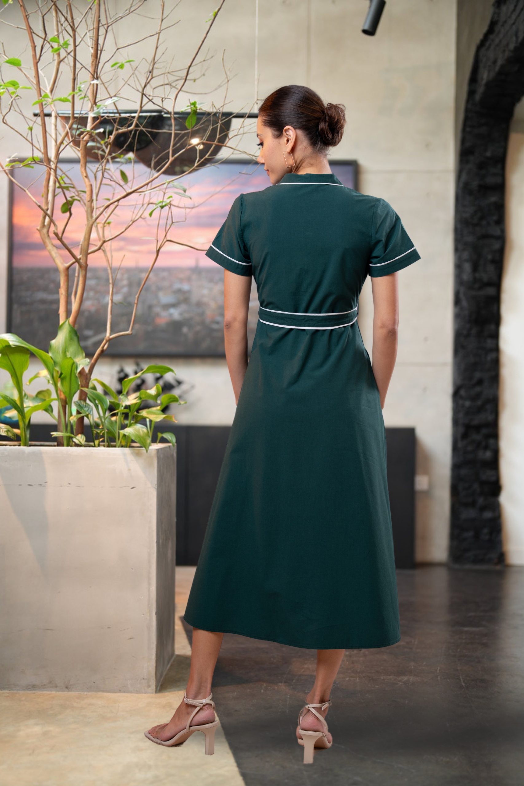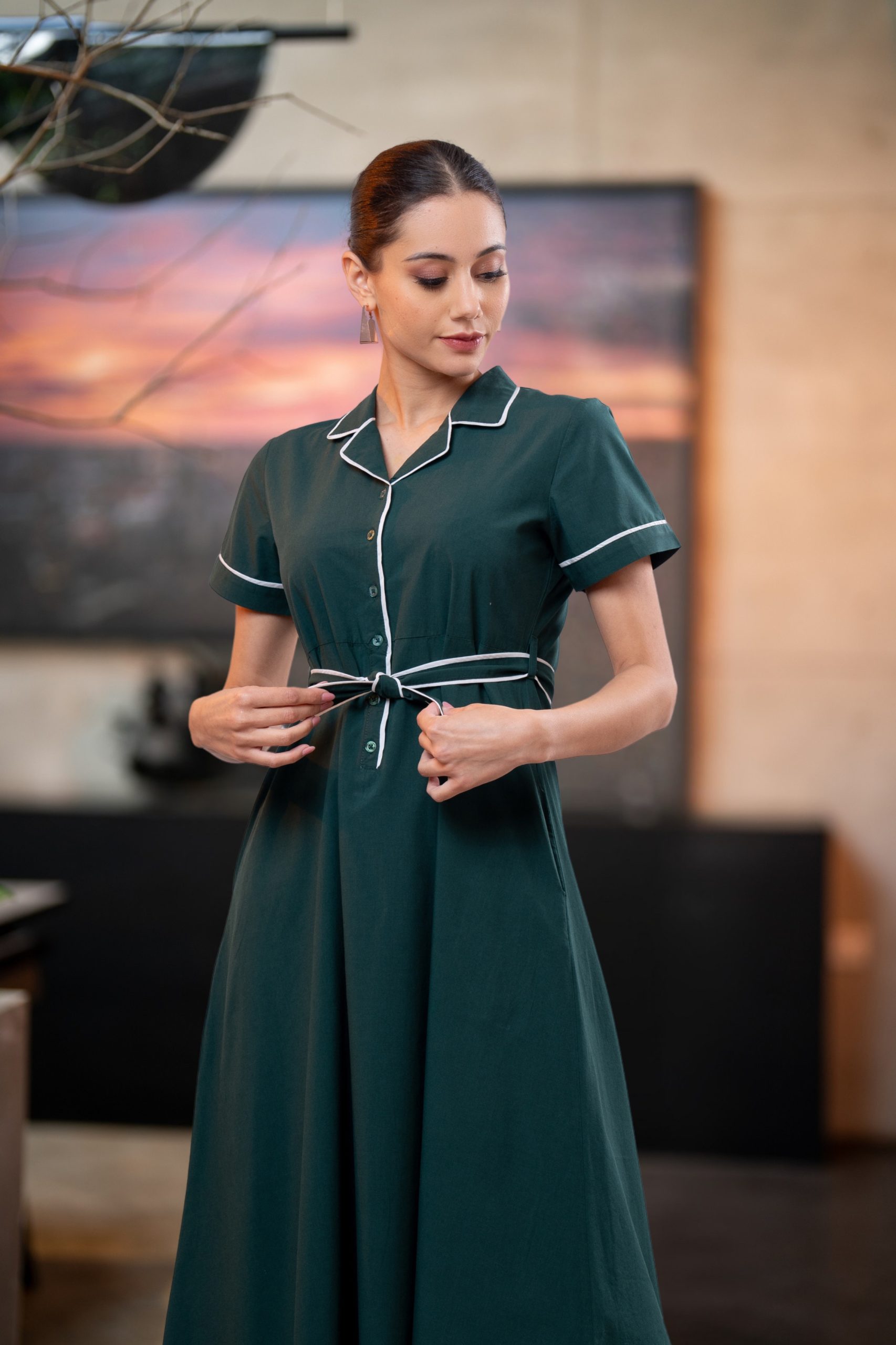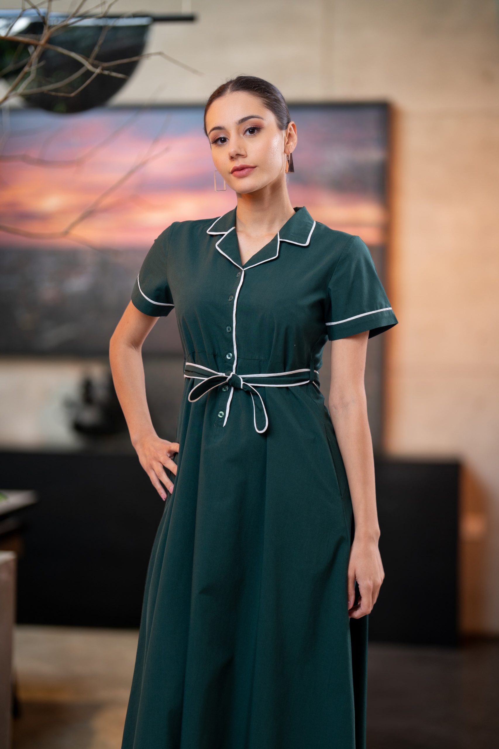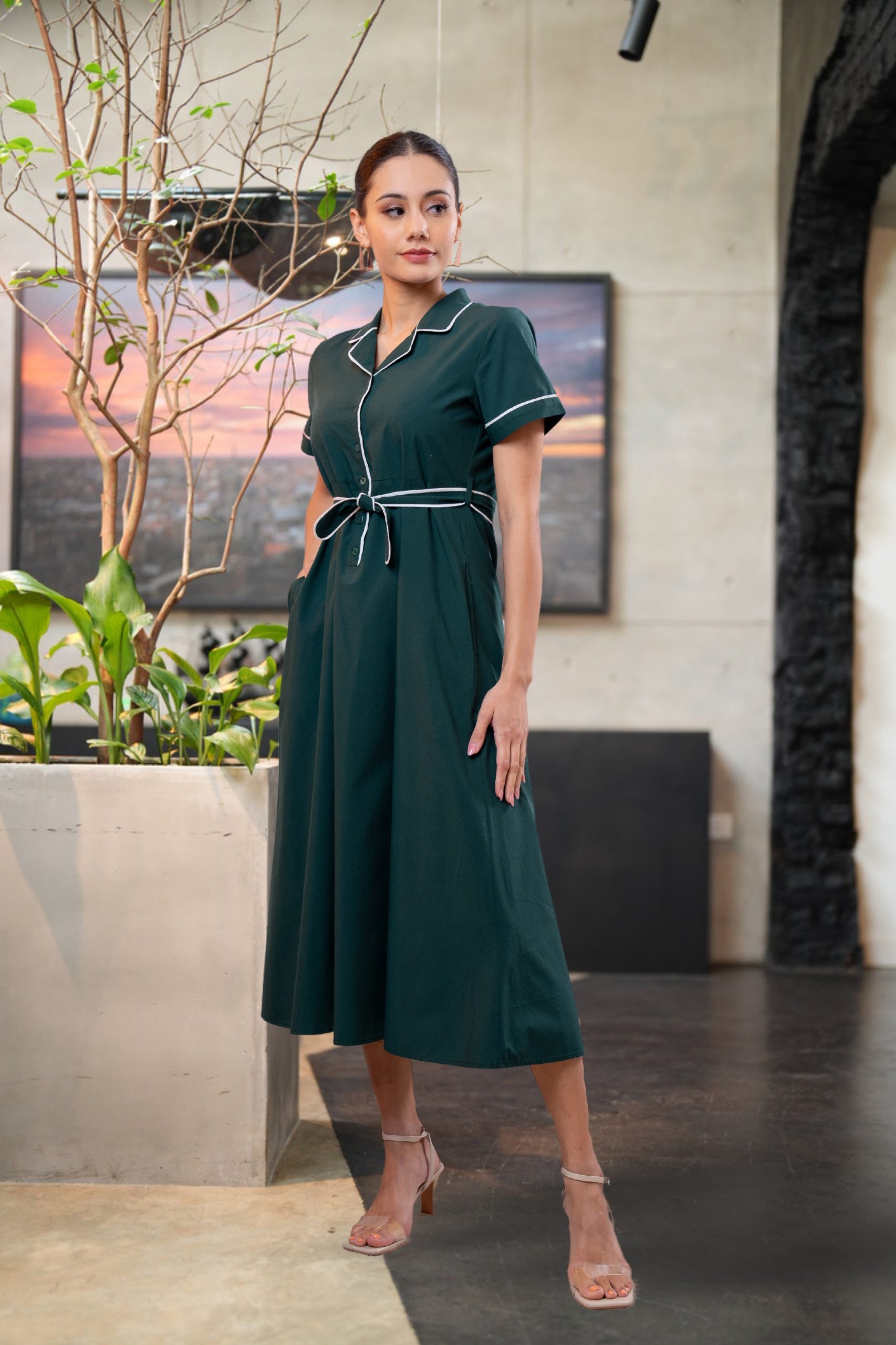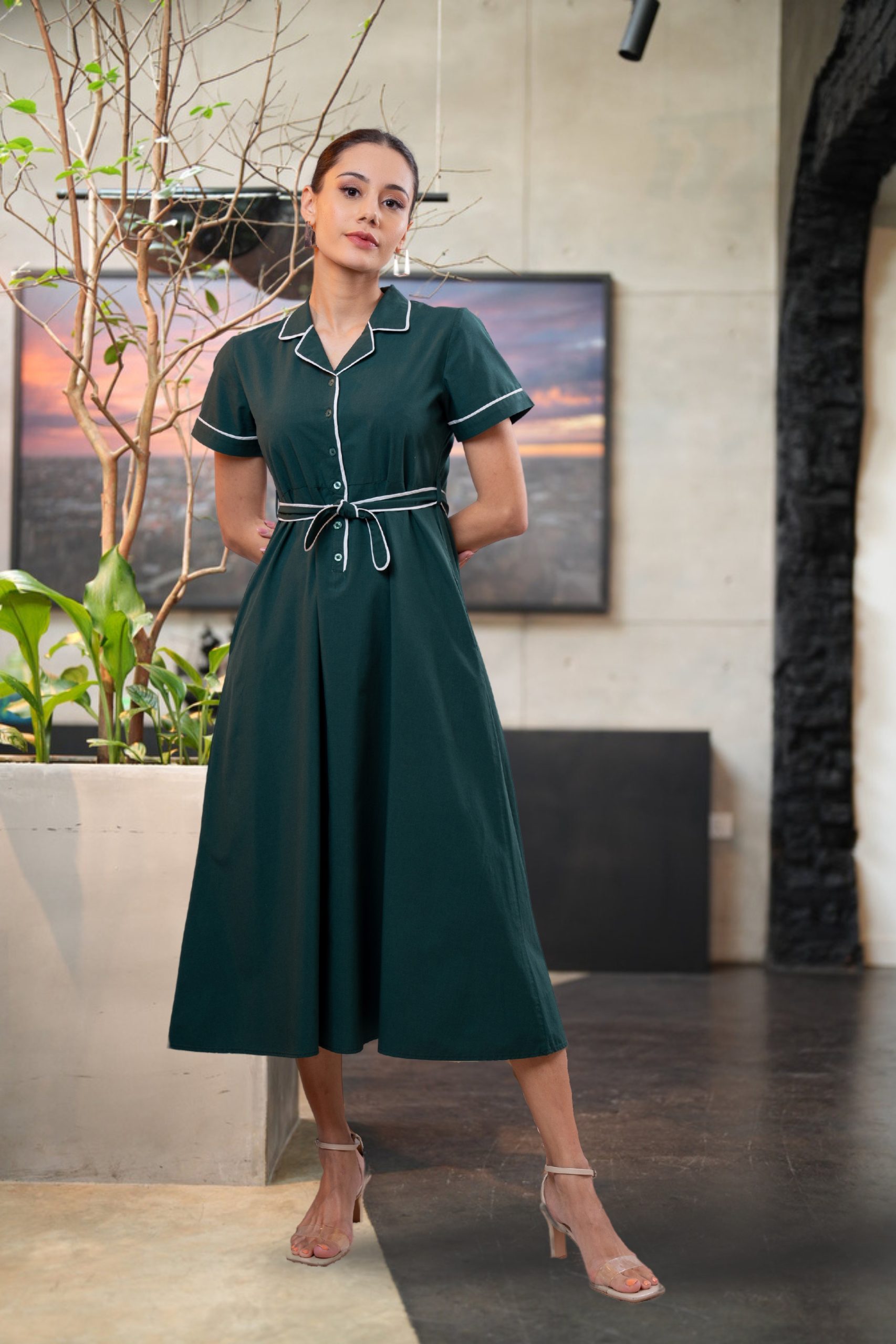 • Elegant Contrast Piping Detailed Midi-Length Design