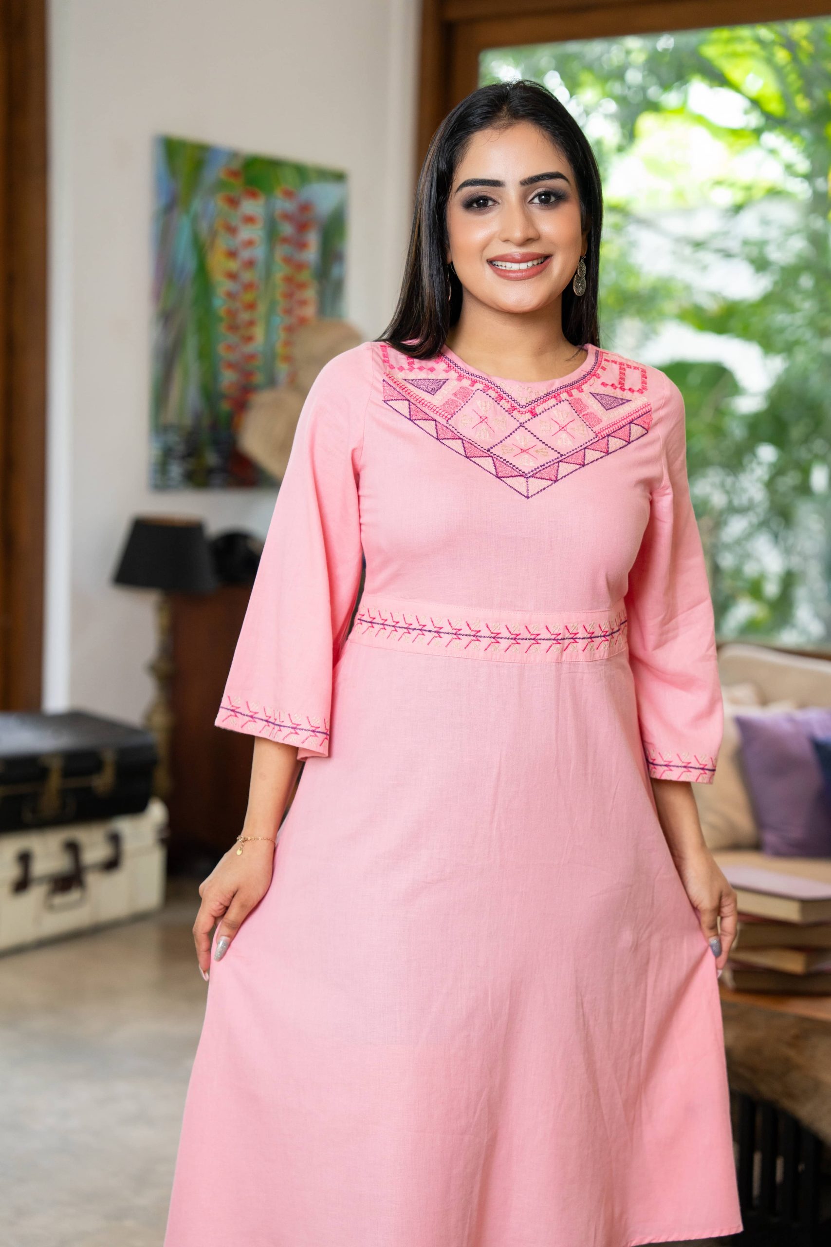 • Soft Feel Embroidered  Dress