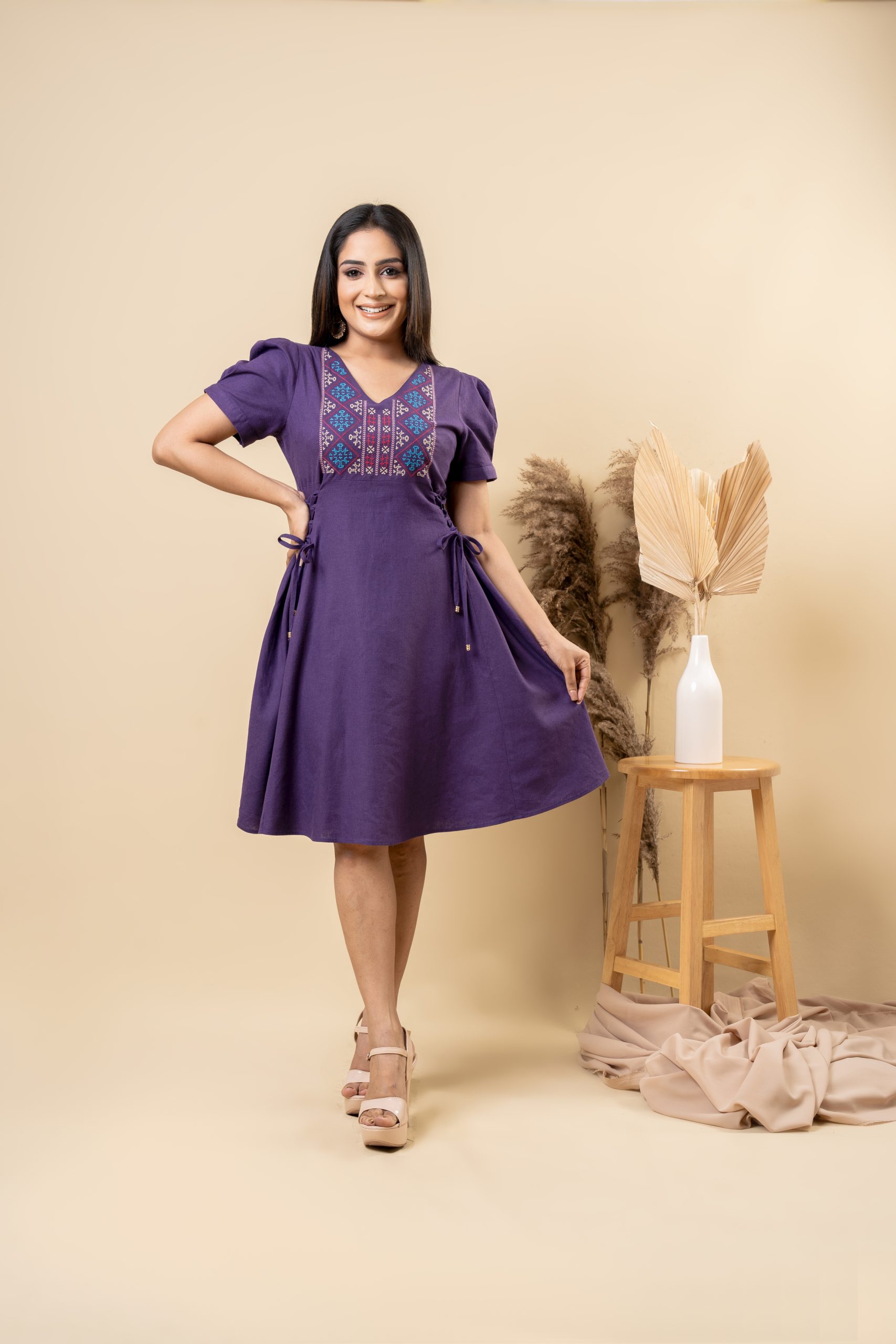 - Soft Feel Embroidered Dress