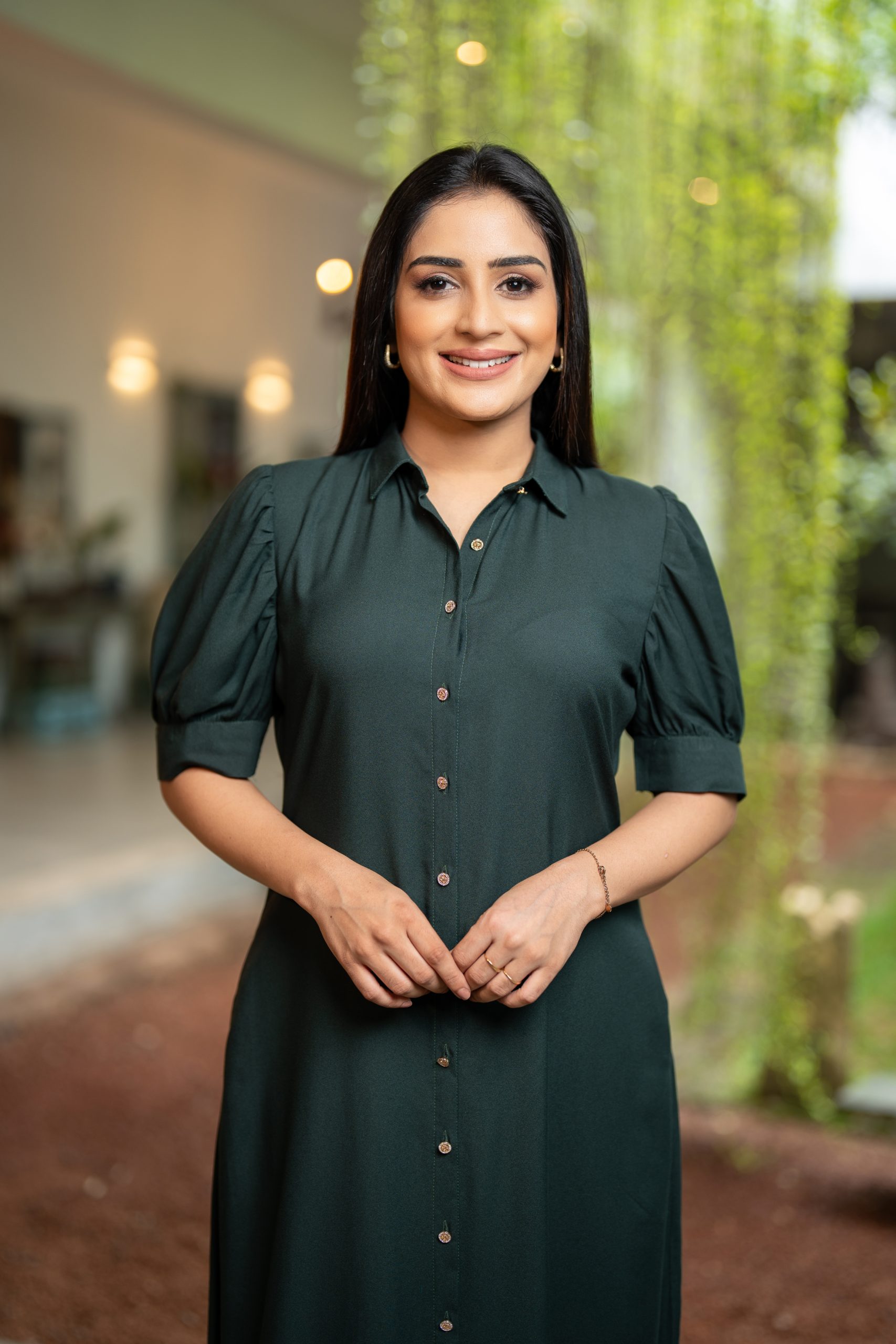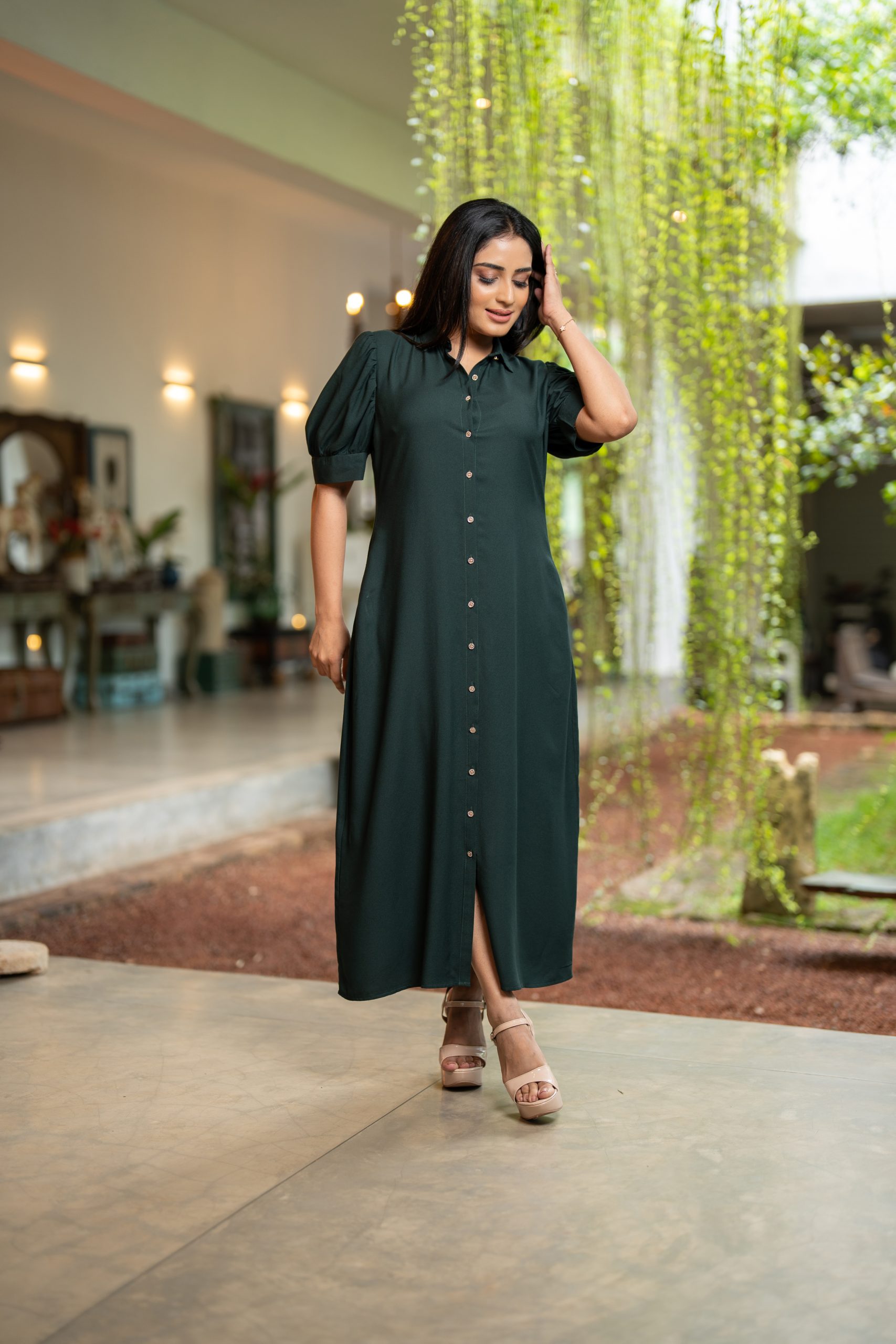 - Front Button-Up Design with Puff Sleeve