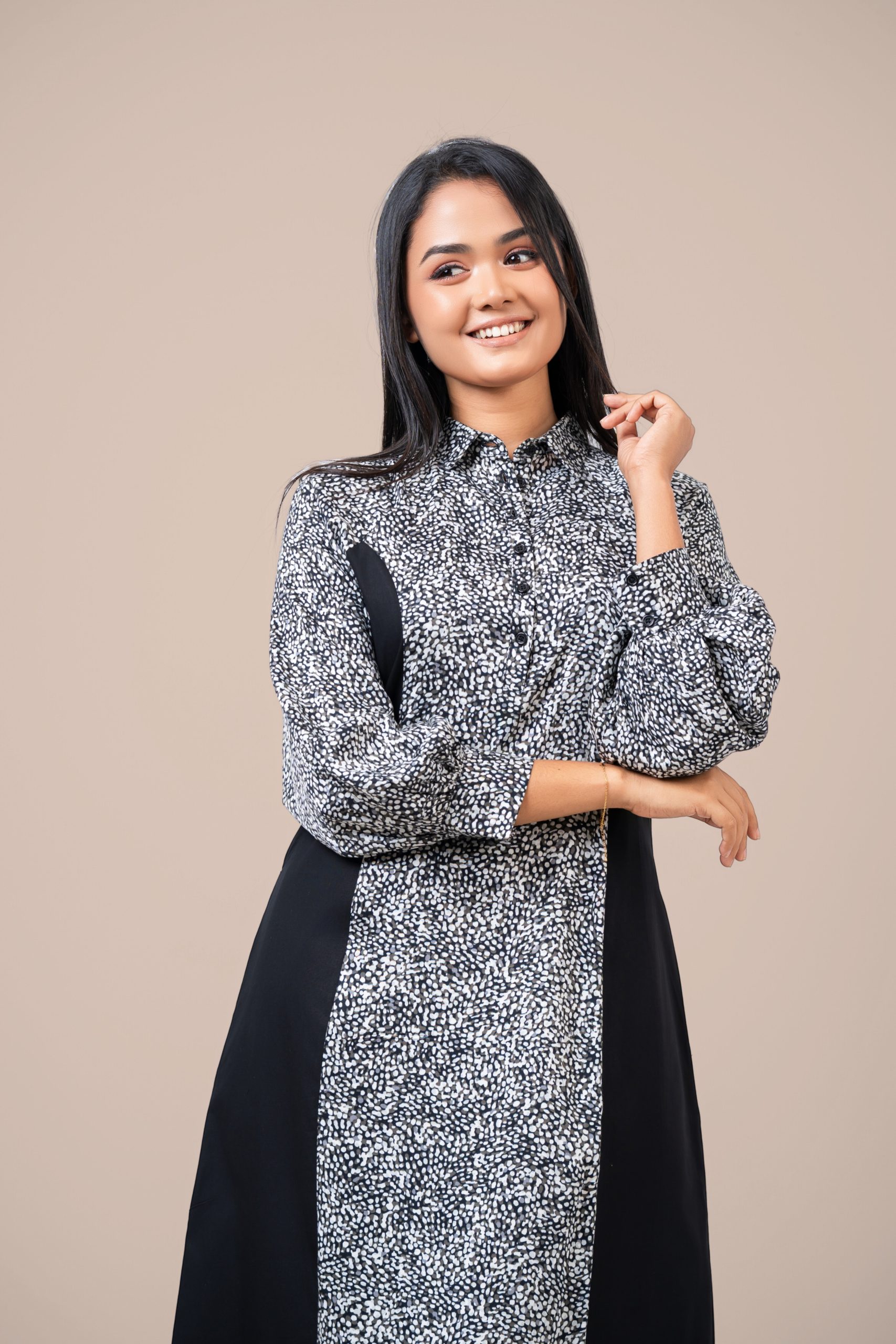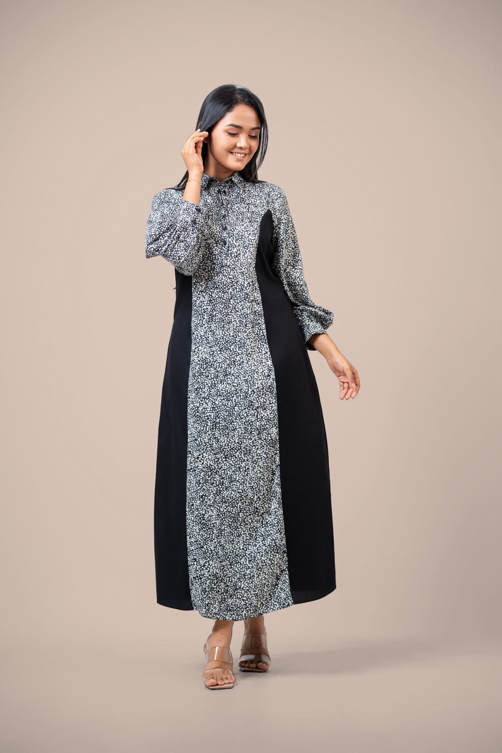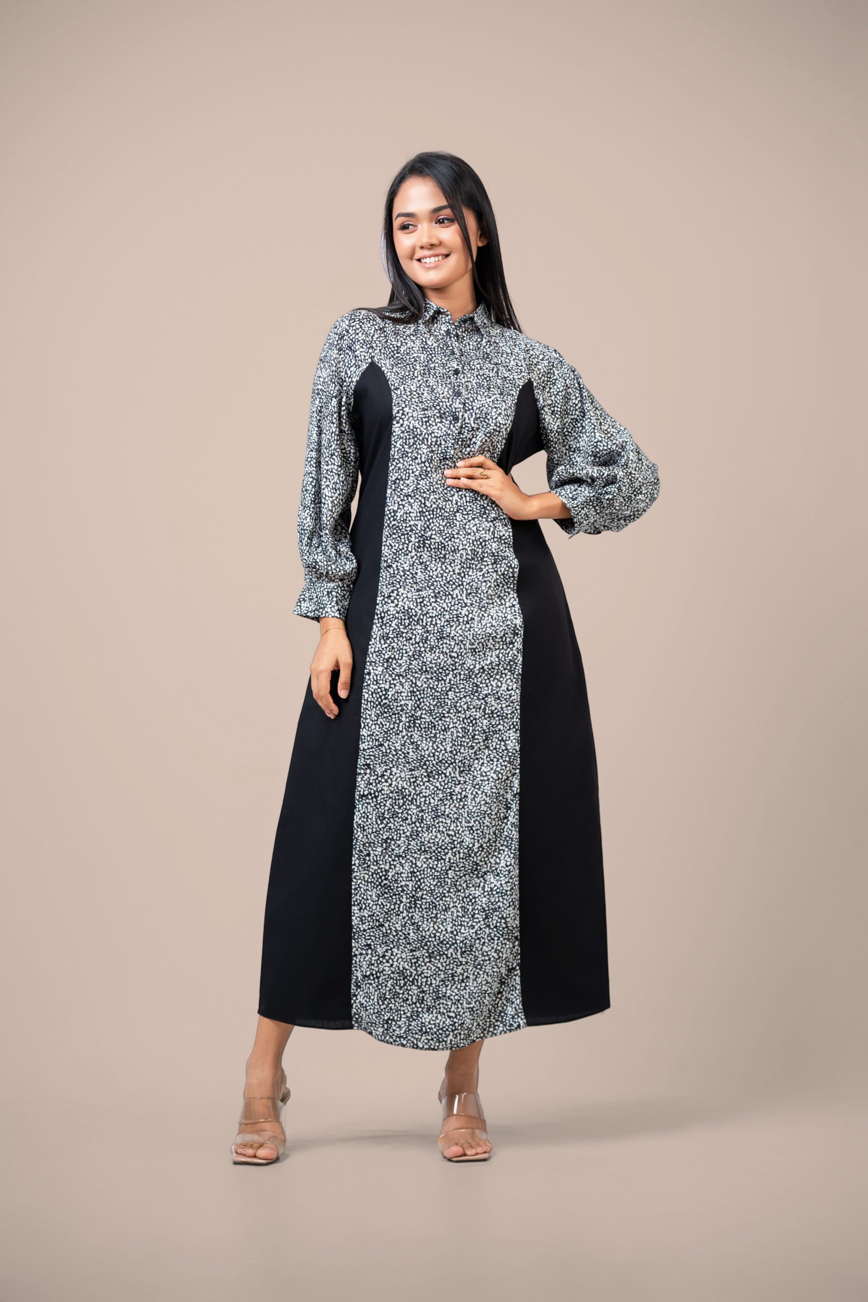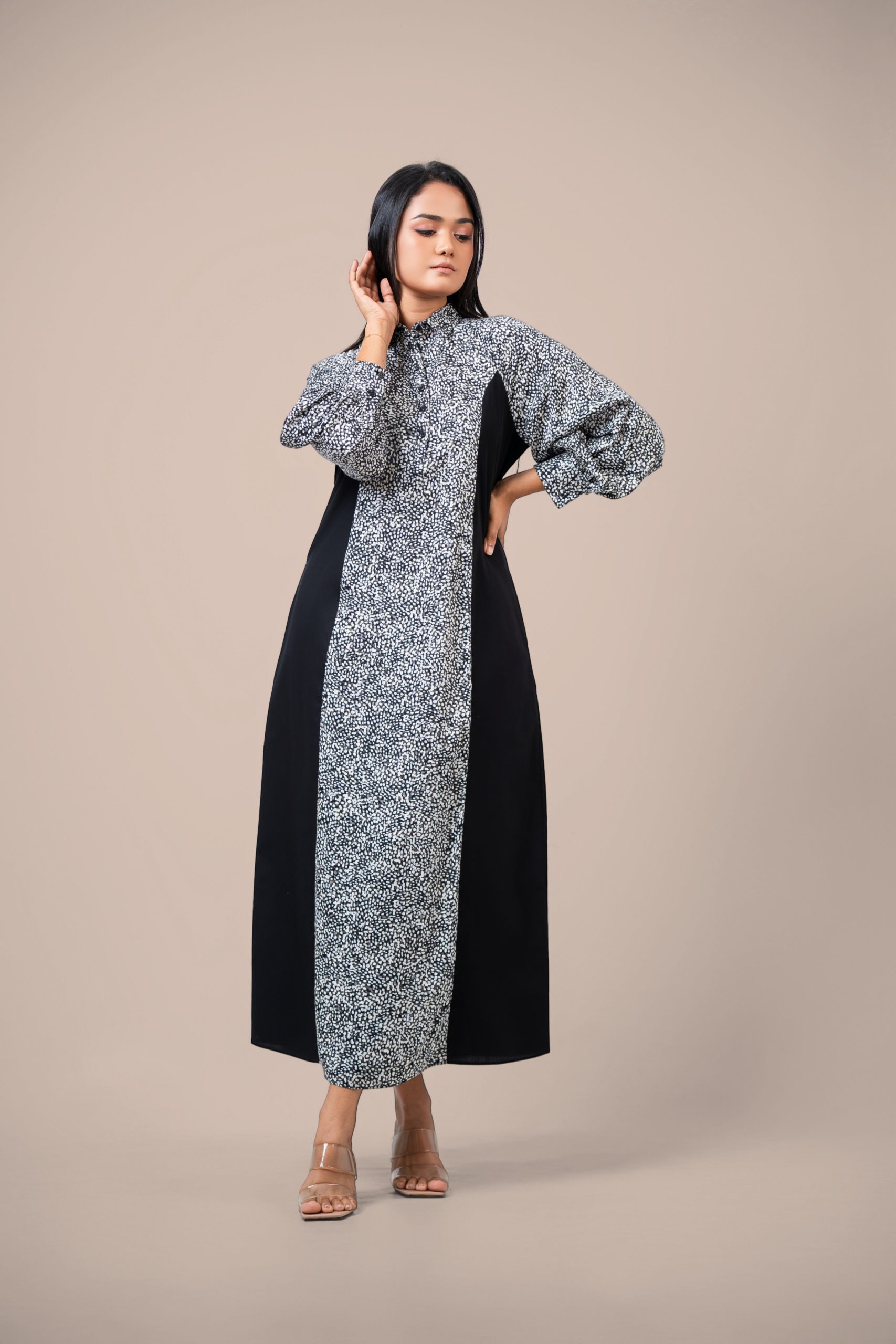 Monochrome Colorblock Maxi Shirt Dress