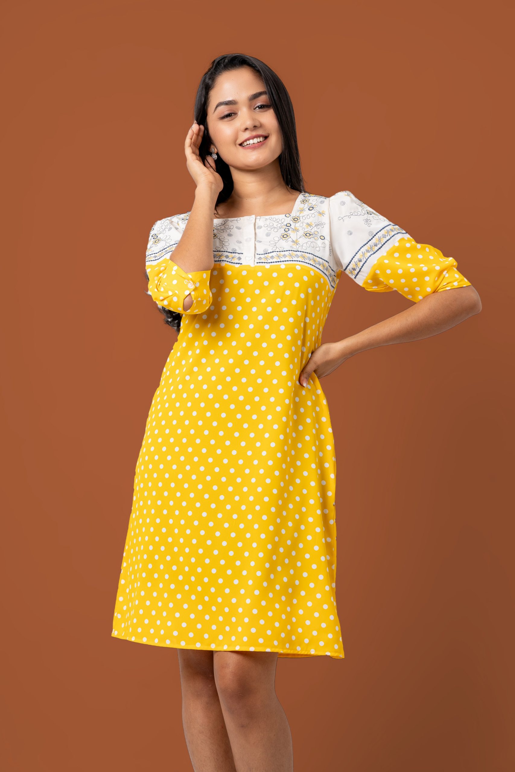 - Stylish Colourblock Design with a Short Dress Silhouette