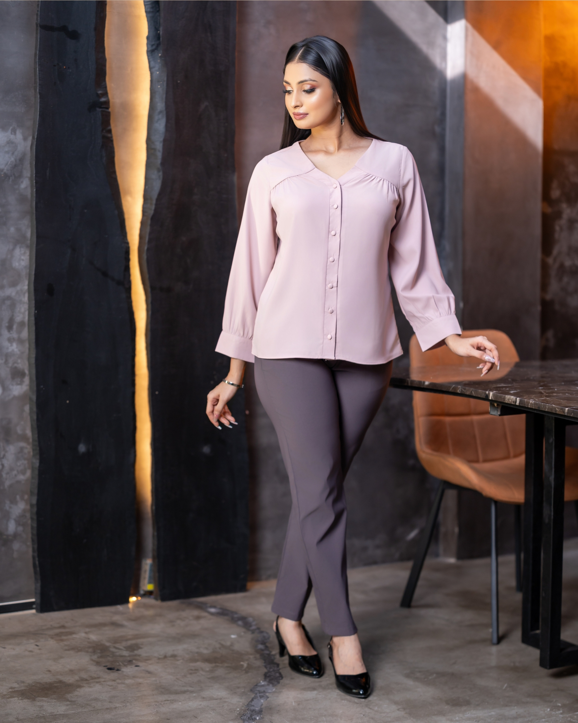 • V-Neckline with Front Yoke